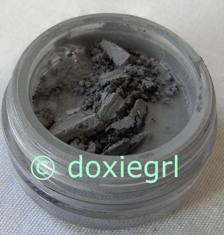 • Mod - A dusty gray dull blue in the jar, with no apparent glimmer. The gray qualities become even more apparent when used dry. Blue tones are coaxed out more when applied wet. This color may well be what many were hoping Blue Black Liner Shadow would be . . . . softer, bluer, very matte, and less stark. This is a great liner to wear for those business suit looks -- demure, sedate, calm, and cool.24376.1